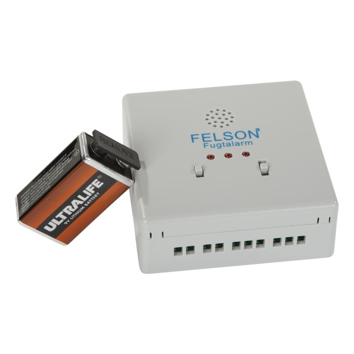 Beskrivelse / Felson Fugtalarm m/relæ inkl. 9v litium batteri